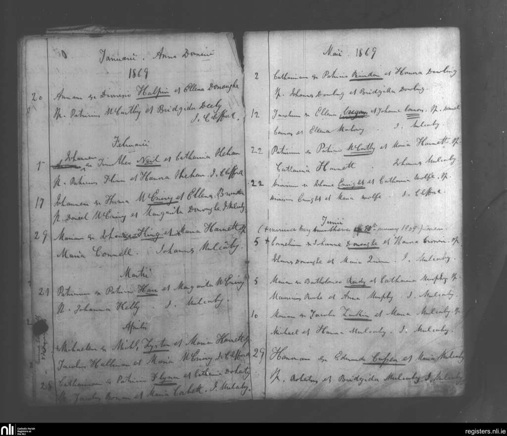 Monagea; County of Limerick; Diocese of Limerick. Baptisms, Jan. 1869 to June 1869