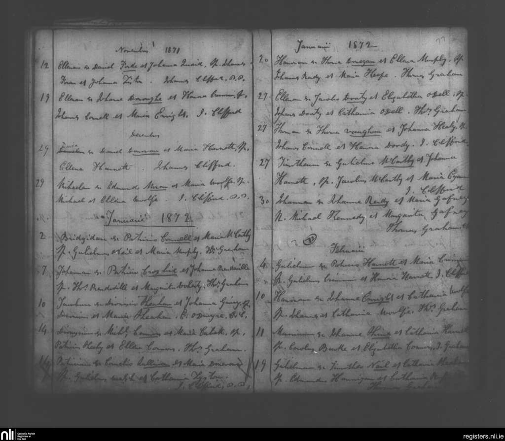 Monagea; County of Limerick; Diocese of Limerick. Baptisms, Nov. 1871 to Feb. 1872