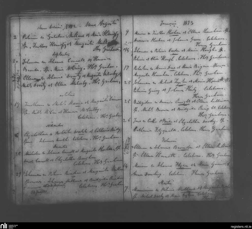 Monagea; County of Limerick; Diocese of Limerick. Baptisms, Aug. 1872 to Mar. 1873