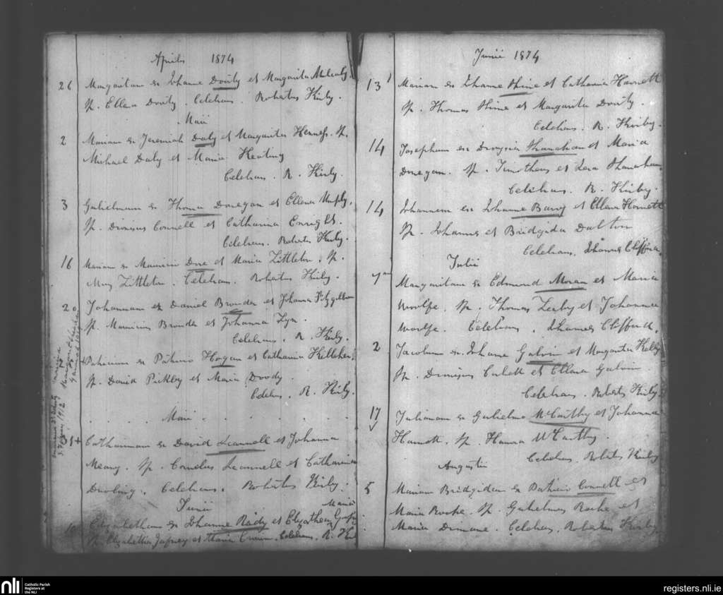 Monagea; County of Limerick; Diocese of Limerick. Baptisms, Apr. 1874 to Aug. 1874
