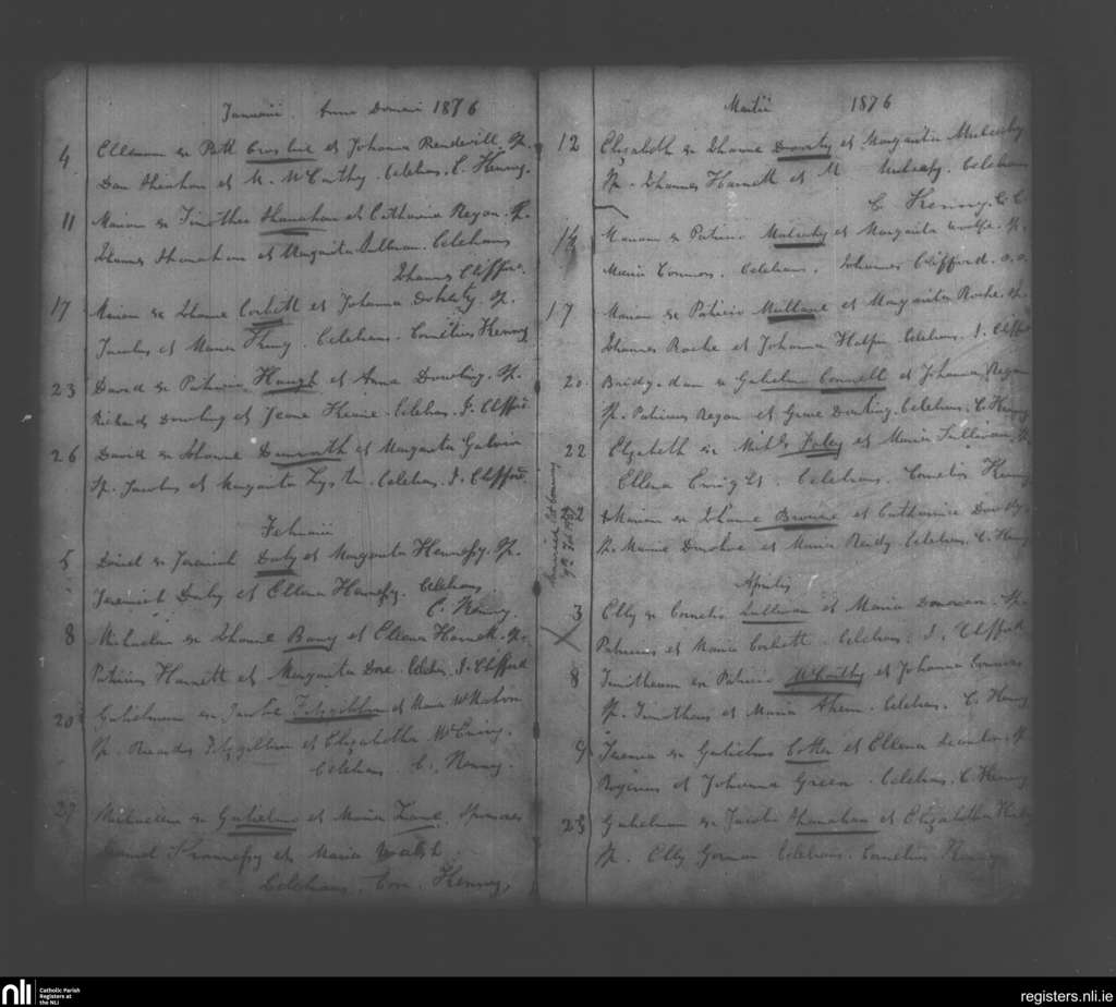 Monagea; County of Limerick; Diocese of Limerick. Baptisms, Jan. 1876 to Apr. 1876