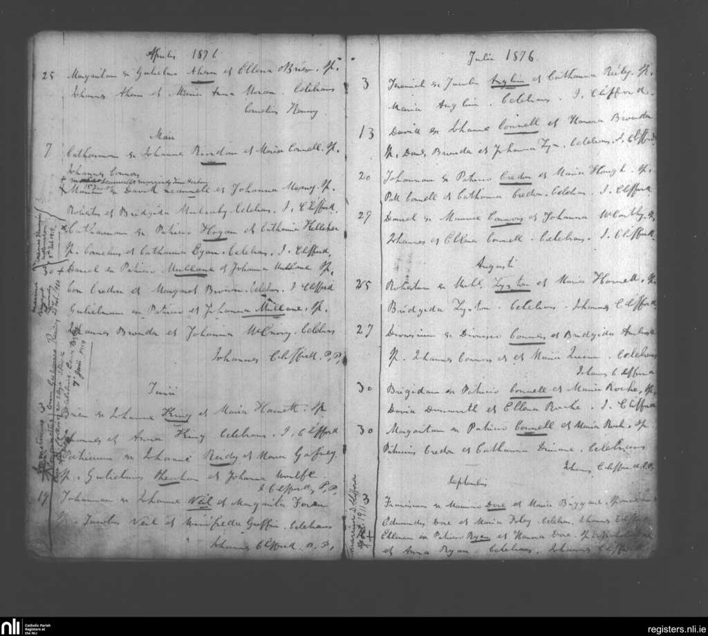 Monagea; County of Limerick; Diocese of Limerick. Baptisms, Apr. 1876 to Sep. 1876