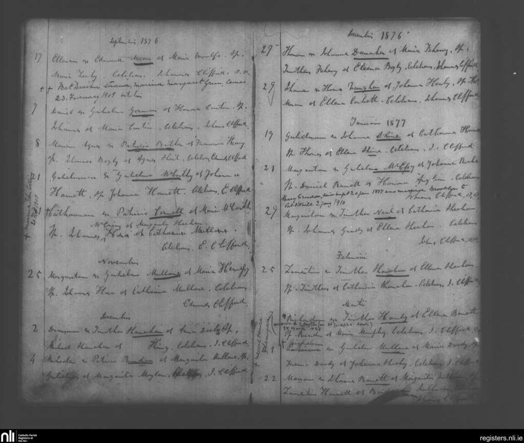 Monagea; County of Limerick; Diocese of Limerick. Baptisms, Sep. 1876 to Mar. 1877