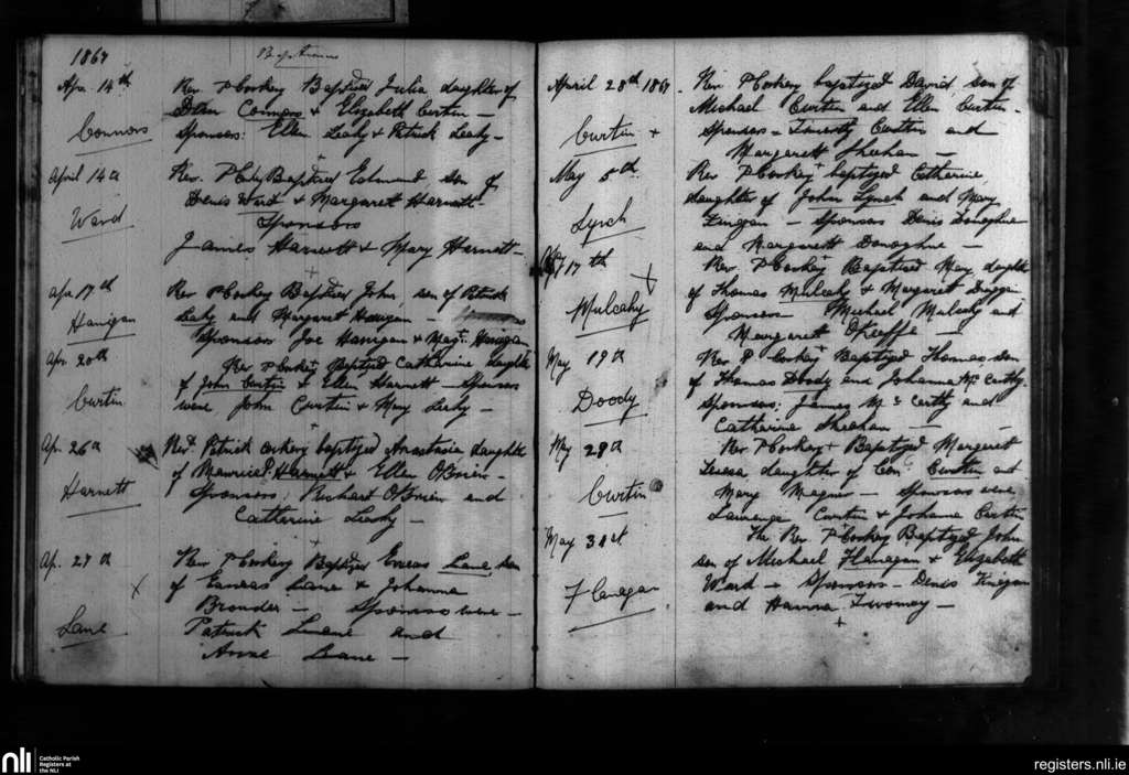 Tournafulla; County of Limerick; Diocese of Limerick. Baptisms, Apr. 1867 to May 1867