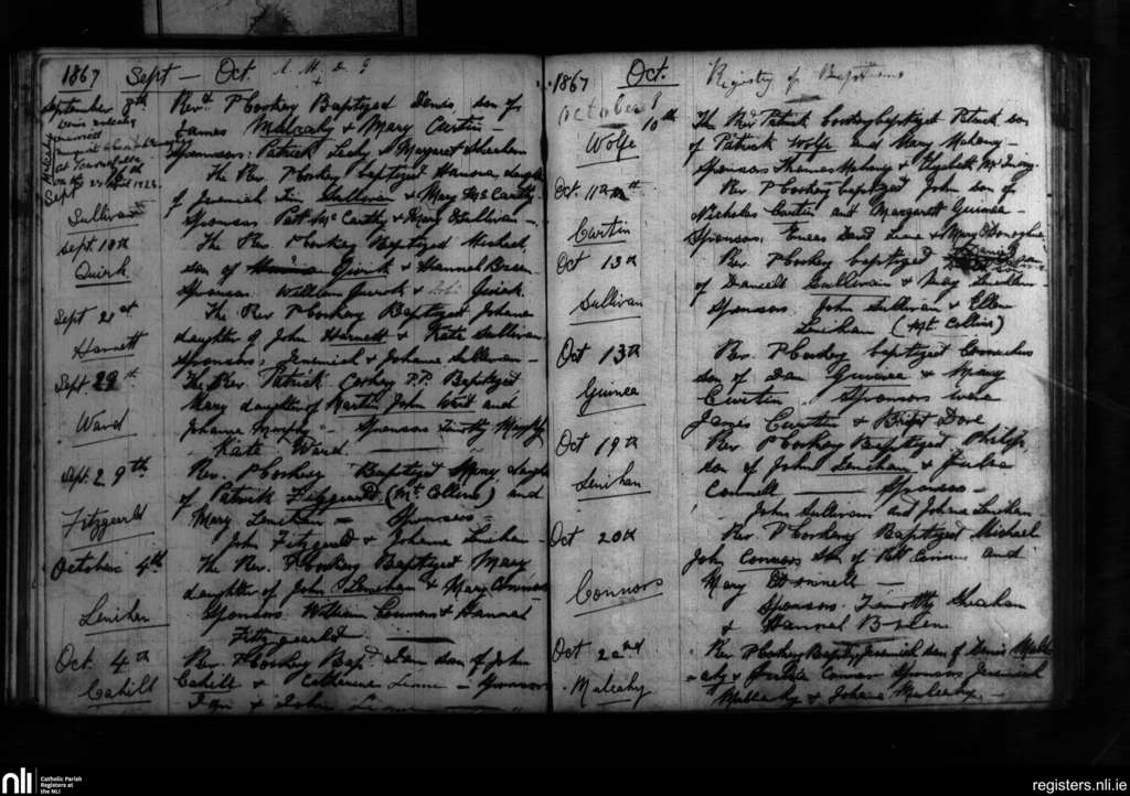 Tournafulla; County of Limerick; Diocese of Limerick. Baptisms, Sep. 1867 to Oct. 1867