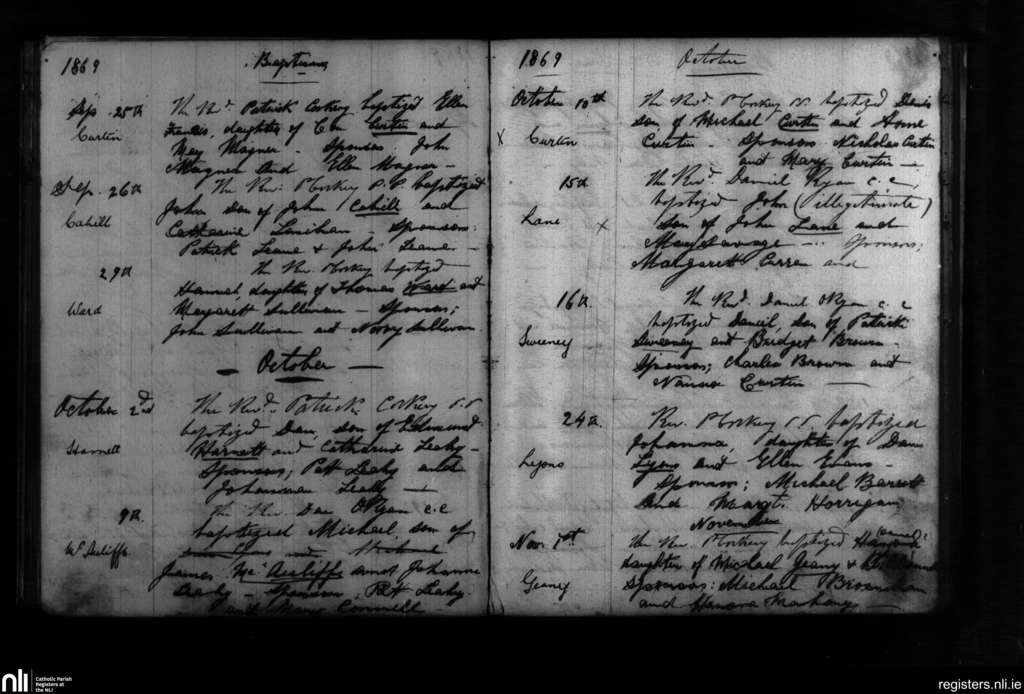 Tournafulla; County of Limerick; Diocese of Limerick. Baptisms, Sep. 1869 to Nov. 1869