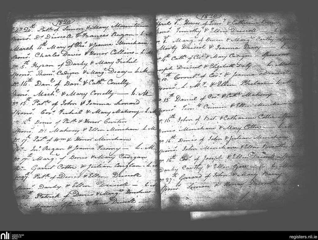 Rath and The Islands; County of Cork; Diocese of Cork and Ross. Baptisms, Feb. 1820 to Apr. 1820