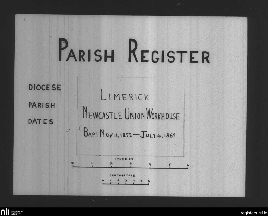 Newcastle Union Workhouse; County of Limerick; Diocese of Limerick. Baptisms