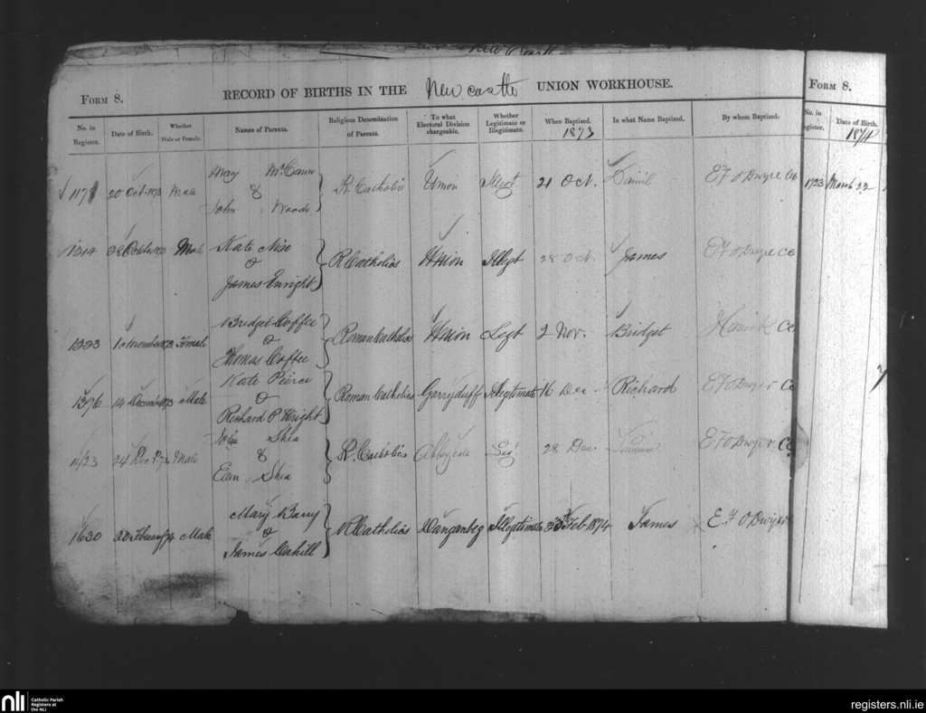 Newcastle Union Workhouse; County of Limerick; Diocese of Limerick. Baptisms, Oct. 1873 to Feb. 1874