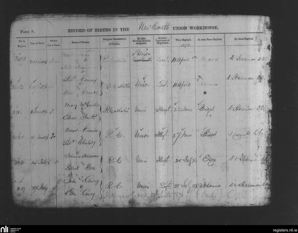 Newcastle Union Workhouse; County of Limerick; Diocese of Limerick. Baptisms, Mar. 1876 to July 1876