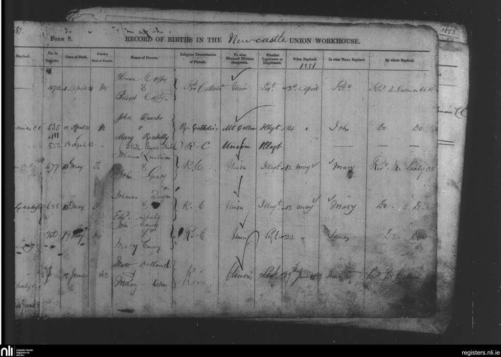 Newcastle Union Workhouse; County of Limerick; Diocese of Limerick. Baptisms, Apr. 1881 to June 1881