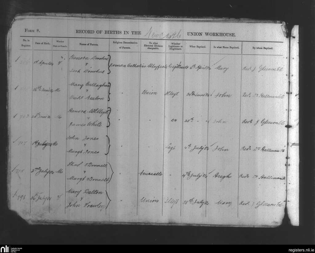 Newcastle Union Workhouse; County of Limerick; Diocese of Limerick. Baptisms, Apr. 1884 to July 1884