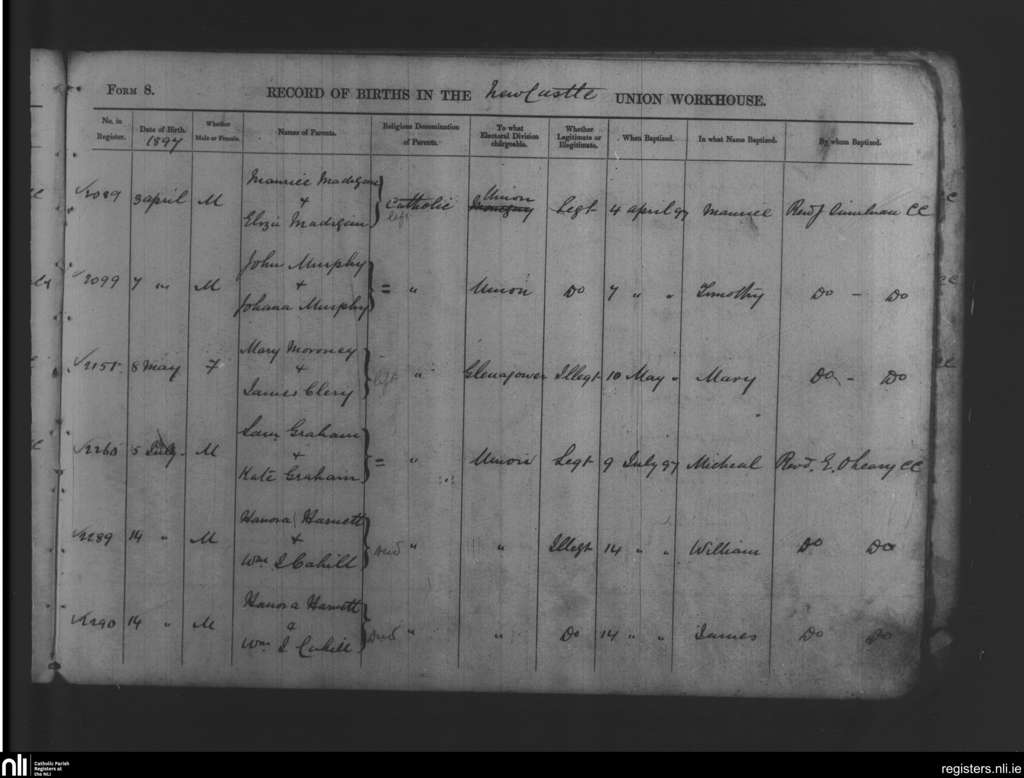 Newcastle Union Workhouse; County of Limerick; Diocese of Limerick. Baptisms, Apr. 1897 to July 1897