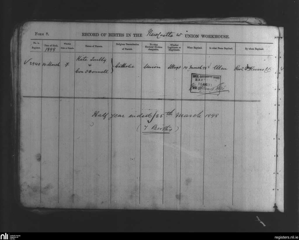 Newcastle Union Workhouse; County of Limerick; Diocese of Limerick. Baptisms, Mar. 1898