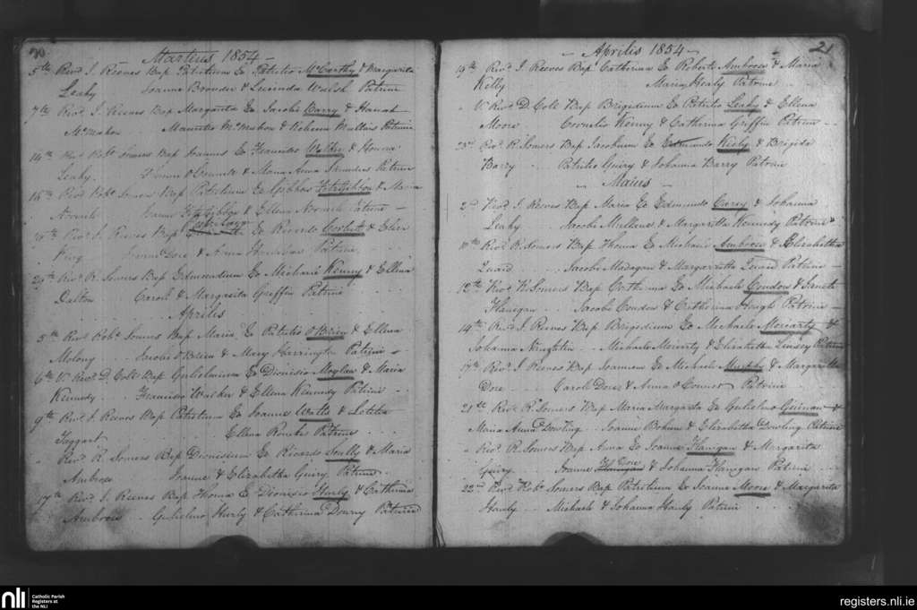 Newcastle West; County of Limerick; Diocese of Limerick. Baptisms, Mar. 1854 to May 1854