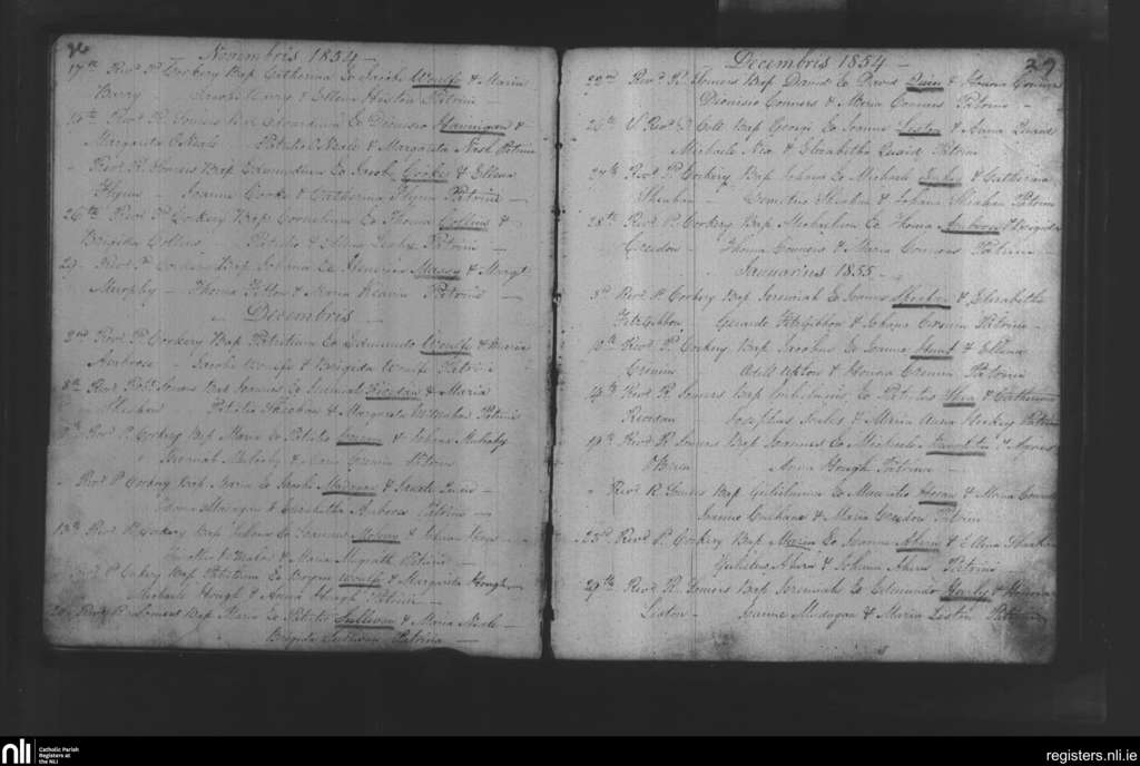 Newcastle West; County of Limerick; Diocese of Limerick. Baptisms, Nov. 1854 to Jan. 1855