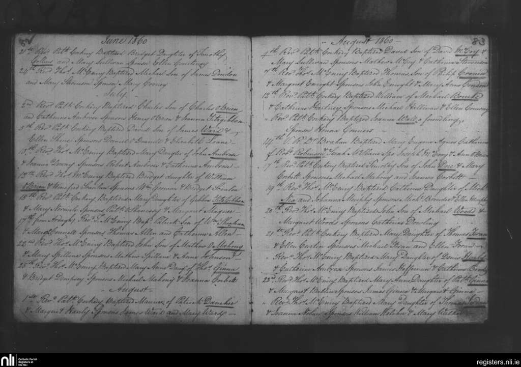 Newcastle West; County of Limerick; Diocese of Limerick. Baptisms, June 1860 to Aug. 1860