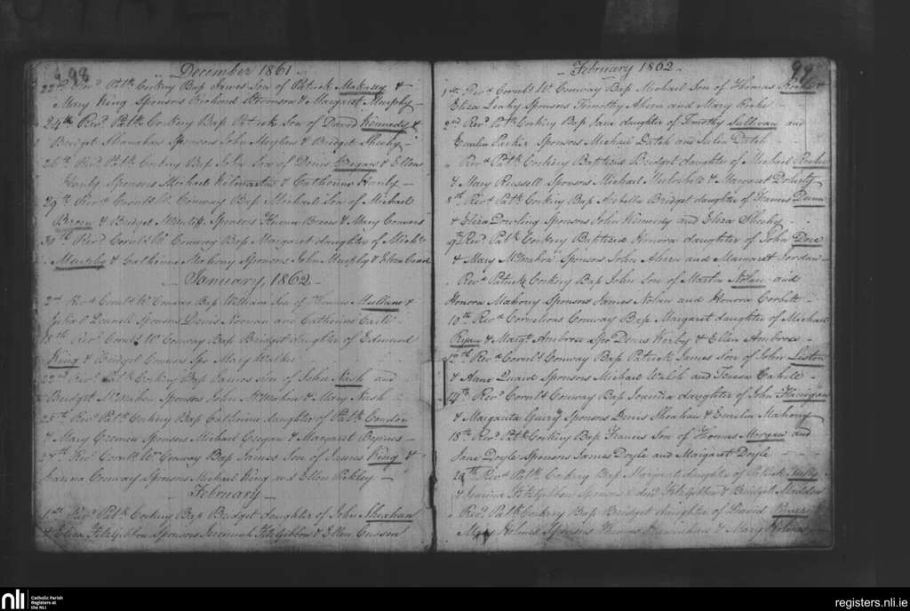 Newcastle West; County of Limerick; Diocese of Limerick. Baptisms, Dec. 1861 to Feb. 1862