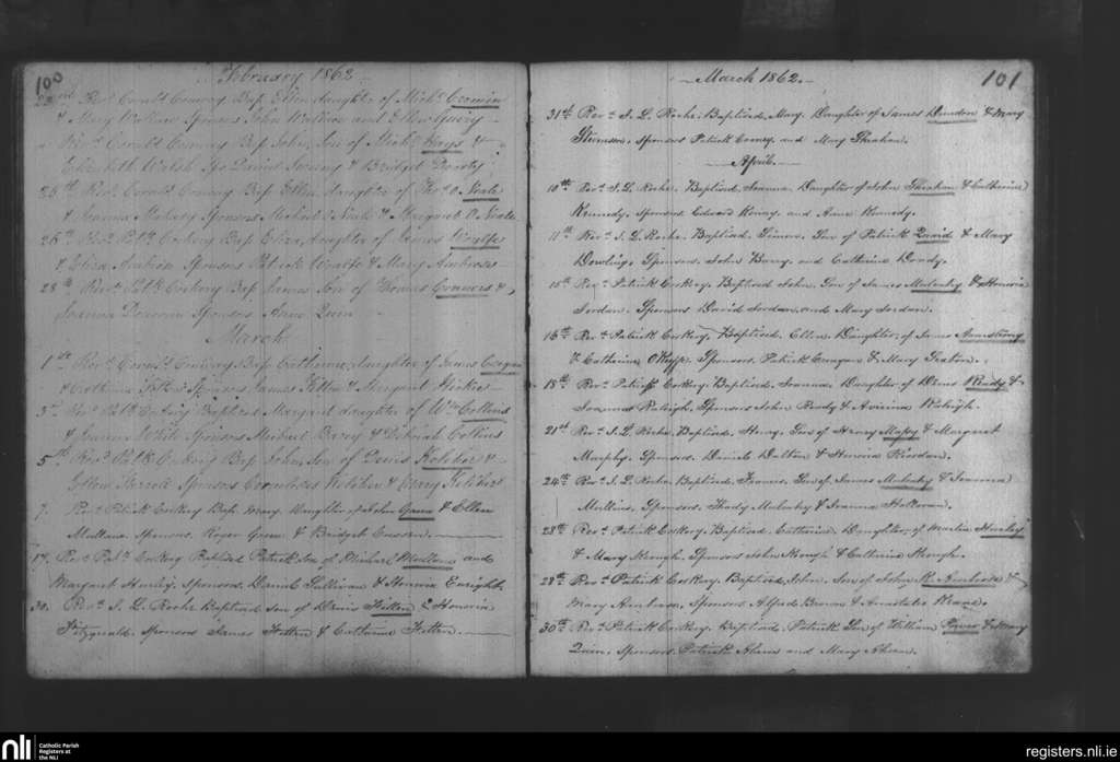 Newcastle West; County of Limerick; Diocese of Limerick. Baptisms, Feb. 1862 to Apr. 1862