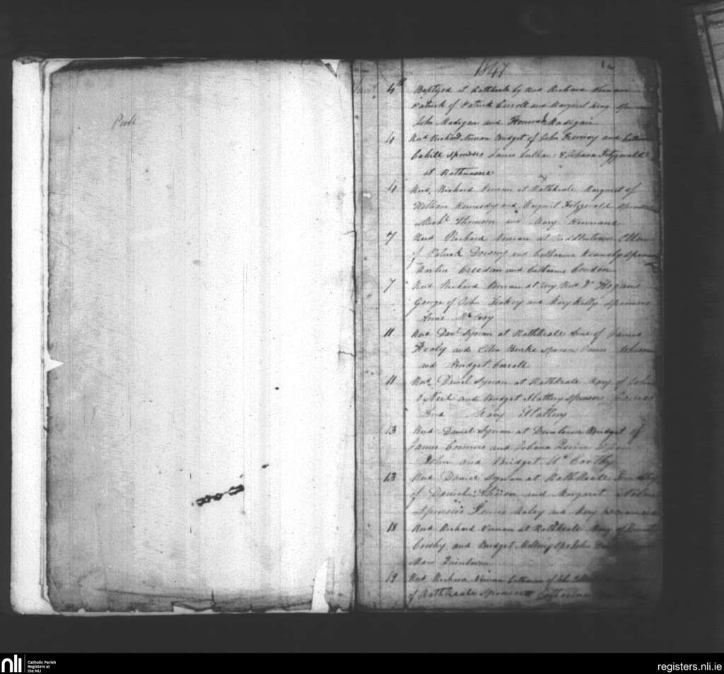 Rathkeale; County of Limerick; Diocese of Limerick. Baptisms, Jan. 1847