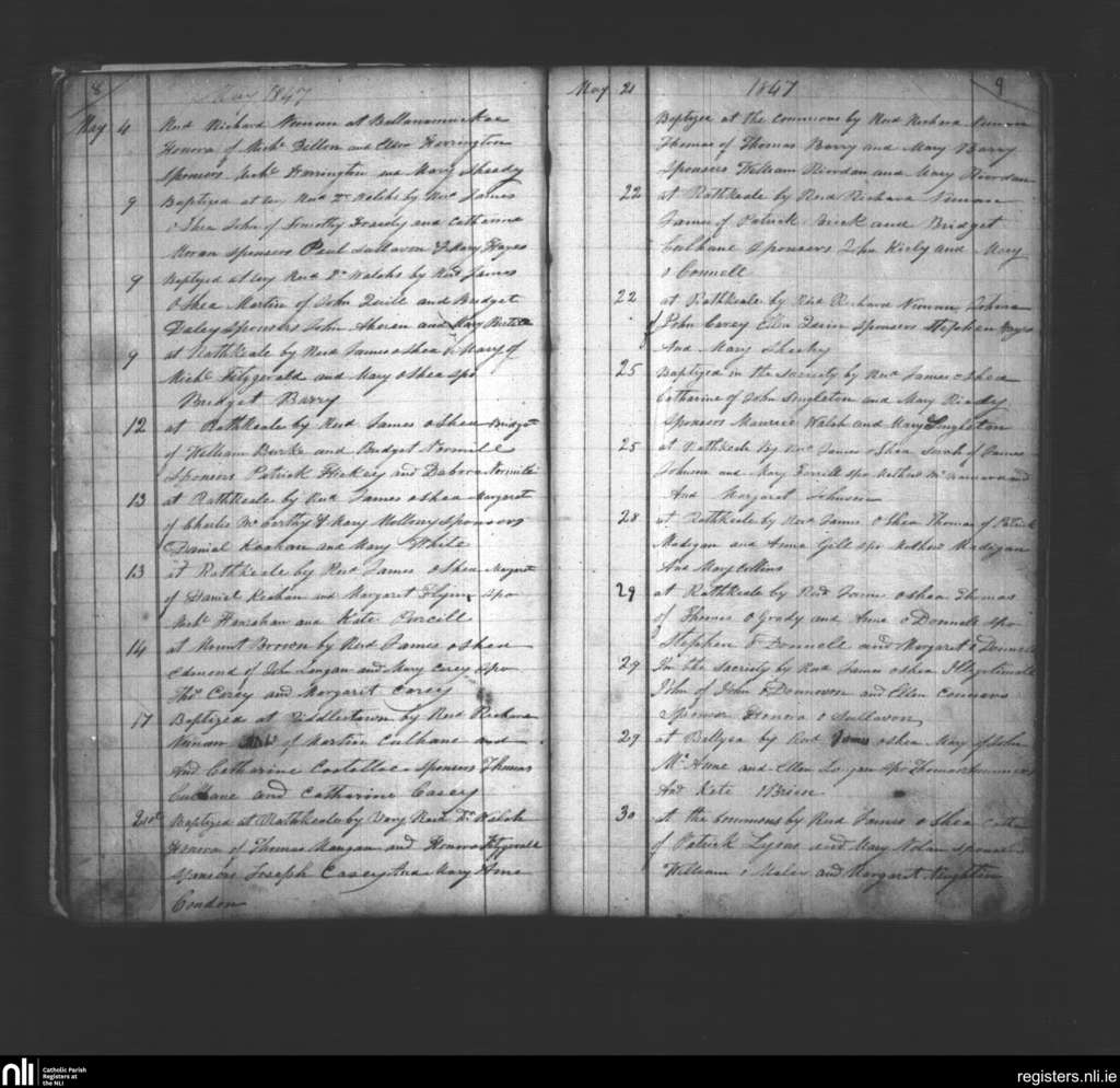 Rathkeale; County of Limerick; Diocese of Limerick. Baptisms, May 1847