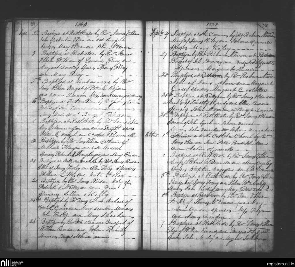 Rathkeale; County of Limerick; Diocese of Limerick. Baptisms, Sep. 1848 to Oct. 1848