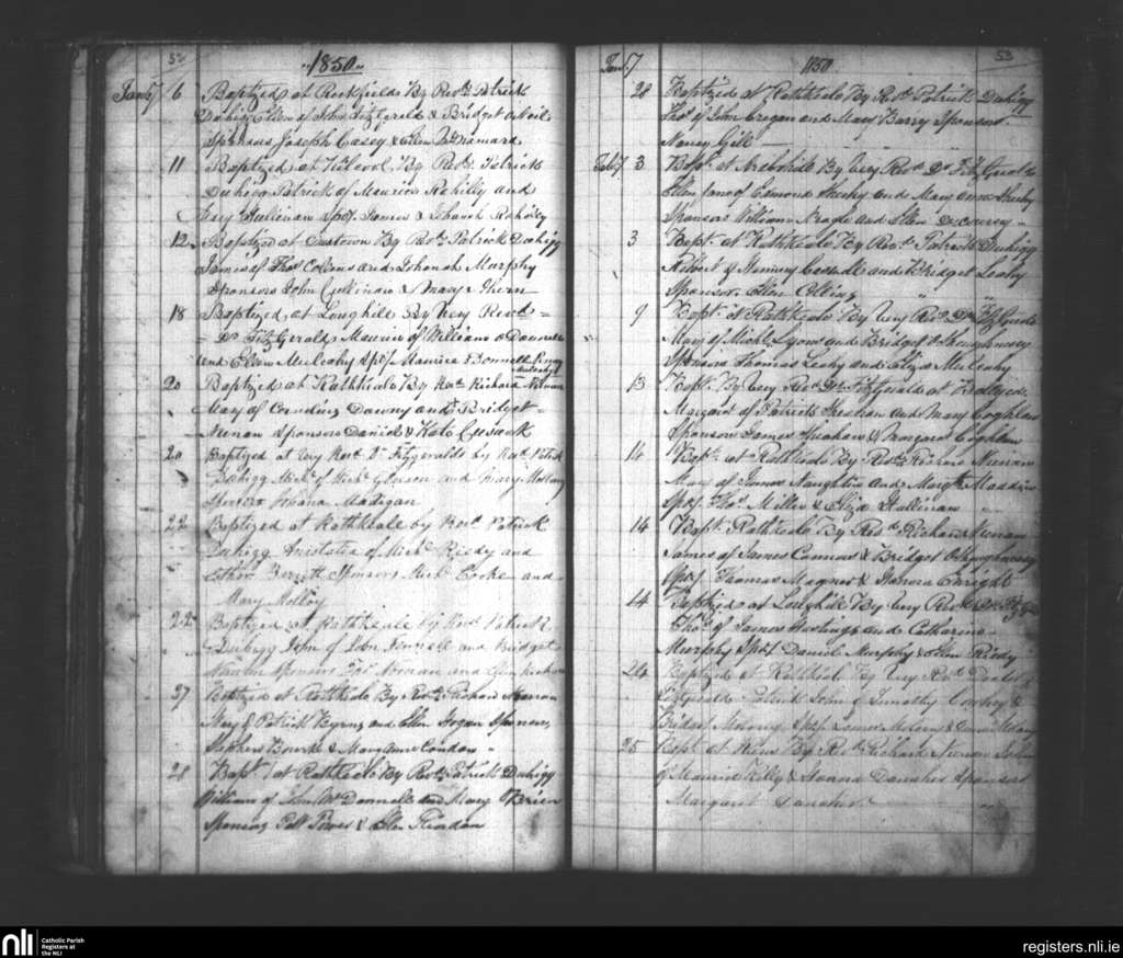 Rathkeale; County of Limerick; Diocese of Limerick. Baptisms, Jan. 1850 to Feb. 1850