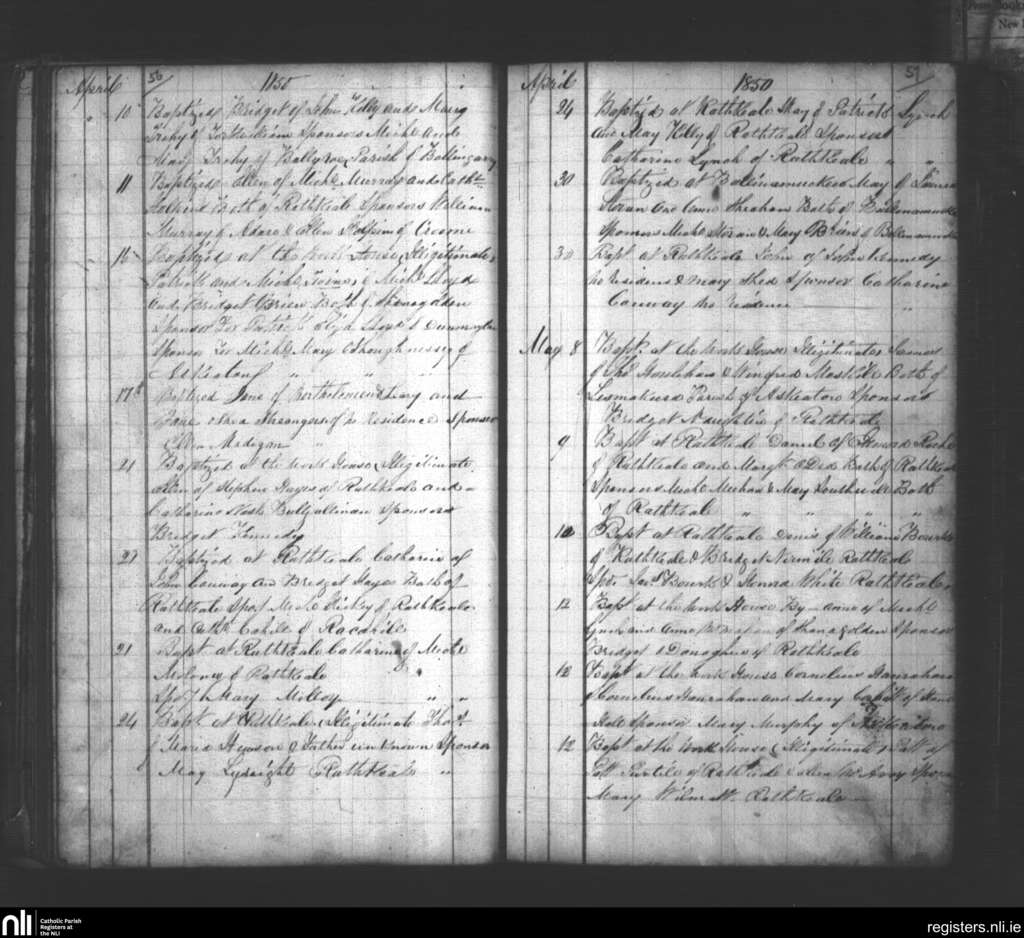 Rathkeale; County of Limerick; Diocese of Limerick. Baptisms, Apr. 1850 to May 1850