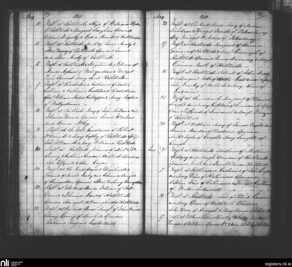Rathkeale; County of Limerick; Diocese of Limerick. Baptisms, May 1850 to June 1850