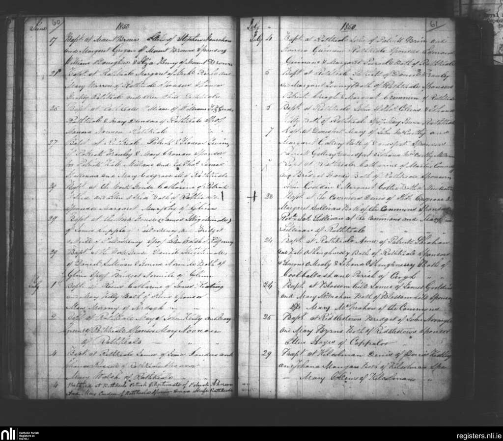 Rathkeale; County of Limerick; Diocese of Limerick. Baptisms, June 1850 to July 1850