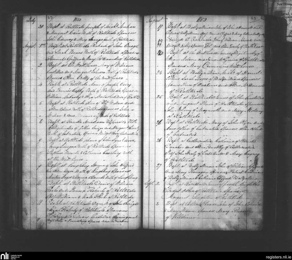 Rathkeale; County of Limerick; Diocese of Limerick. Baptisms, July 1850 to Sep. 1850