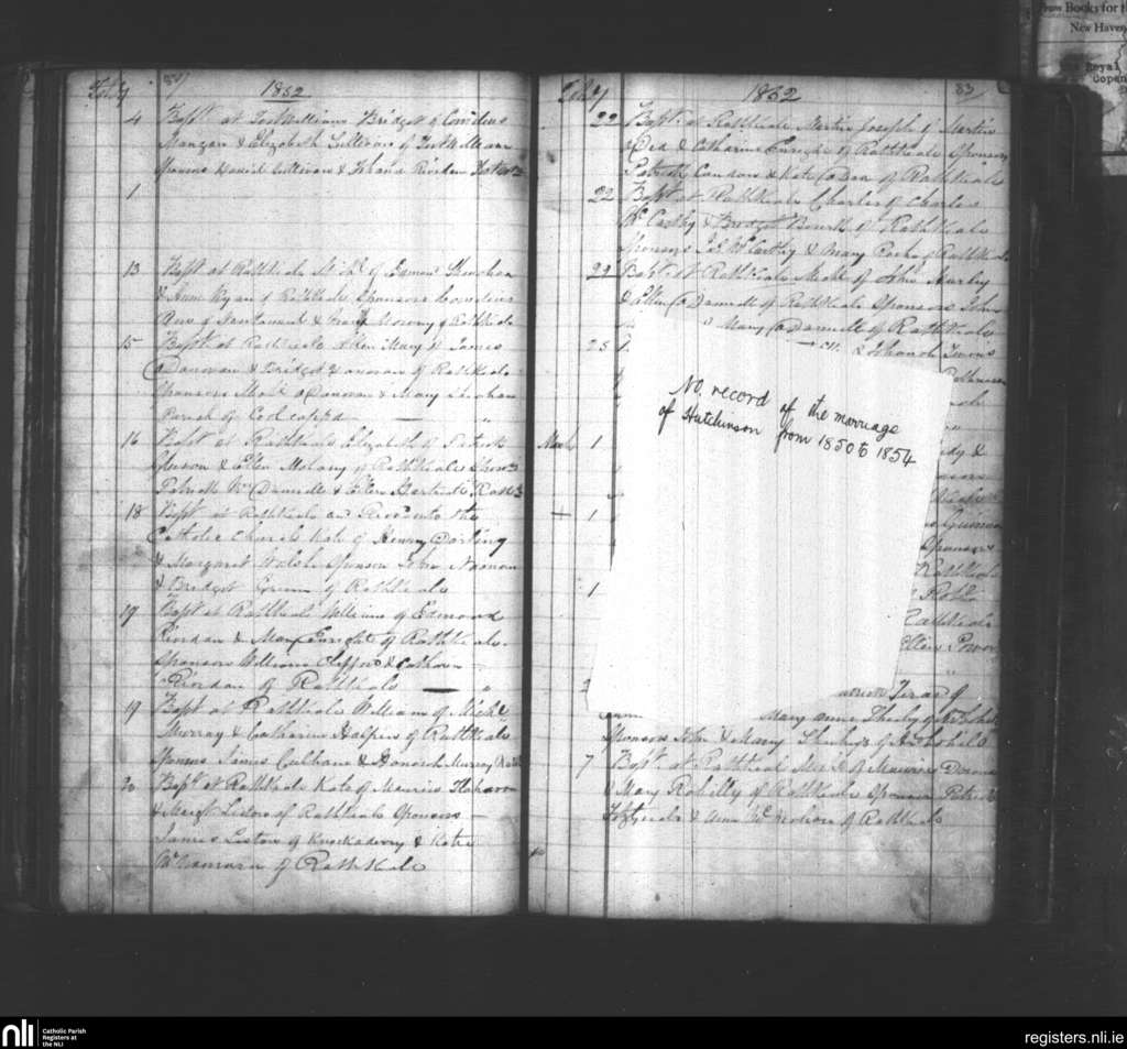 Rathkeale; County of Limerick; Diocese of Limerick. Baptisms, Feb. 1852 to Mar. 1852