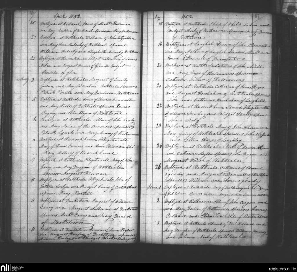Rathkeale; County of Limerick; Diocese of Limerick. Baptisms, Apr. 1852 to June 1852