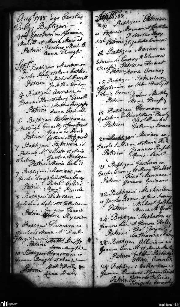St. John's, Limerick city; County of Limerick; Diocese of Limerick. Baptisms, Aug. 1788 to Sep. 1788