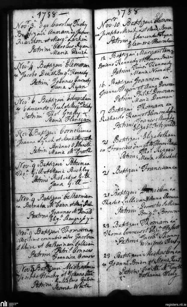 St. John's, Limerick city; County of Limerick; Diocese of Limerick. Baptisms, Nov. 1788