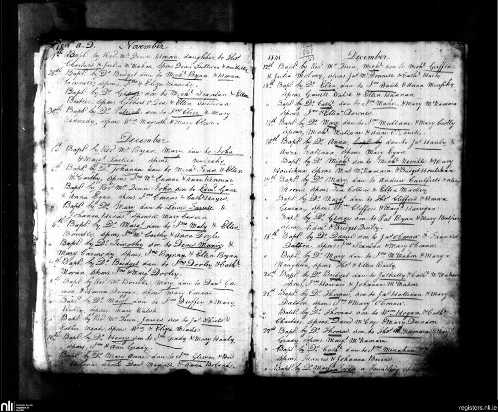 St. John's, Limerick city; County of Limerick; Diocese of Limerick. Baptisms, Nov. 1841 to Dec. 1841