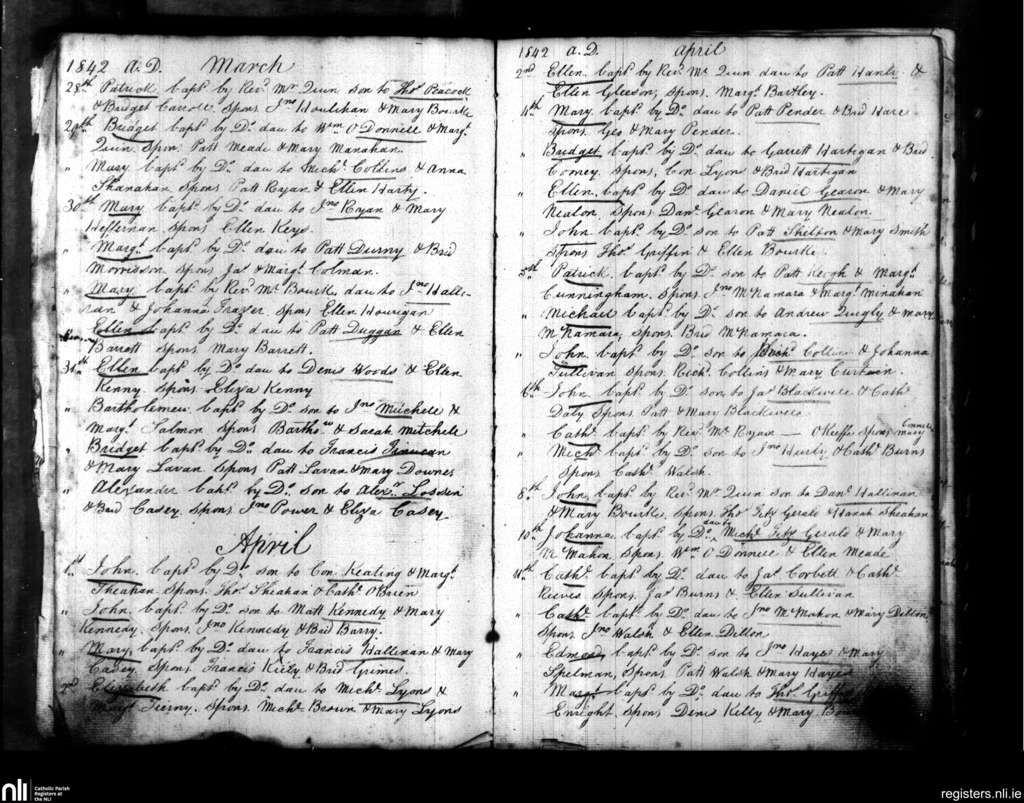 St. John's, Limerick city; County of Limerick; Diocese of Limerick. Baptisms, Mar. 1842 to Apr. 1842