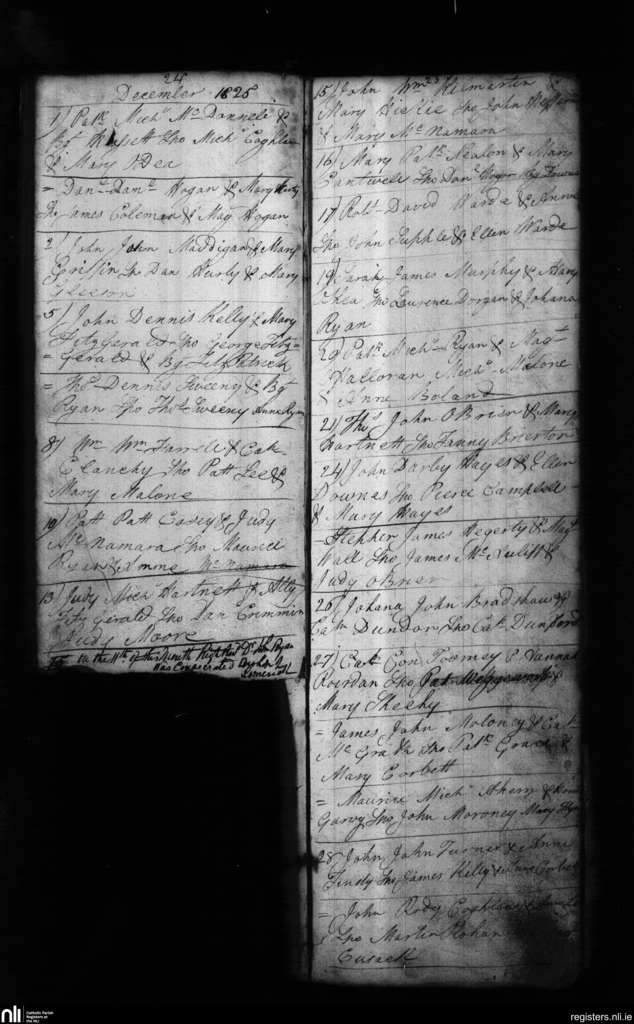 St. John's, Limerick city; County of Limerick; Diocese of Limerick. Baptisms, Dec. 1825