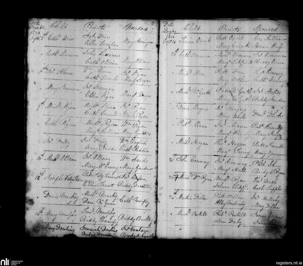 St. John's, Limerick city; County of Limerick; Diocese of Limerick. Baptisms, Sep. 1830