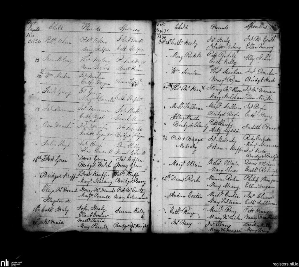 St. John's, Limerick city; County of Limerick; Diocese of Limerick. Baptisms, Oct. 1830
