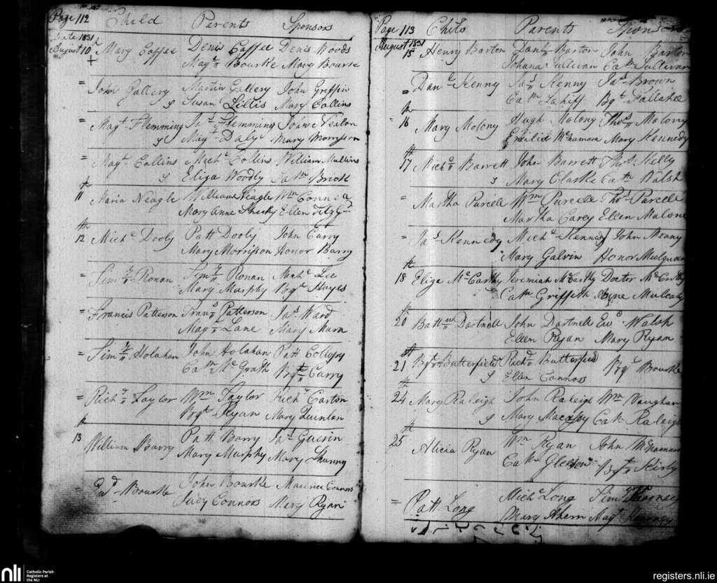 St. John's, Limerick city; County of Limerick; Diocese of Limerick. Baptisms, Aug. 1831