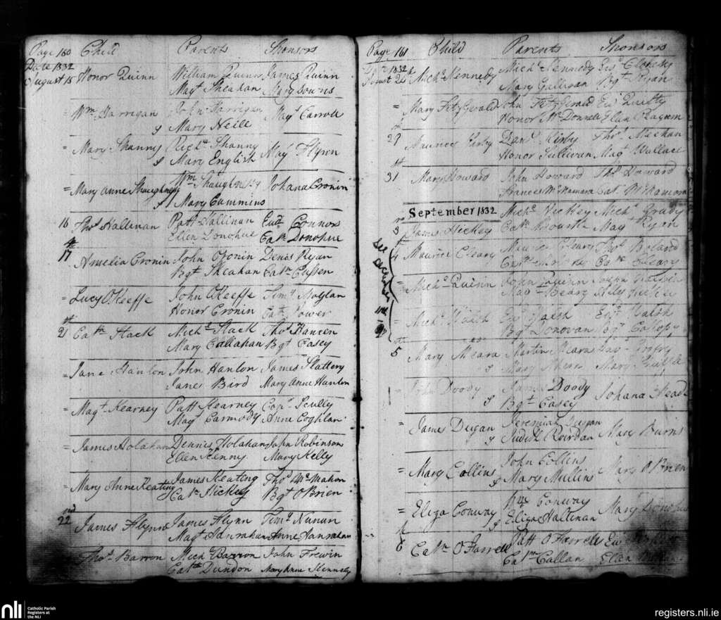 St. John's, Limerick city; County of Limerick; Diocese of Limerick. Baptisms, Aug. 1832 to Sep. 1832