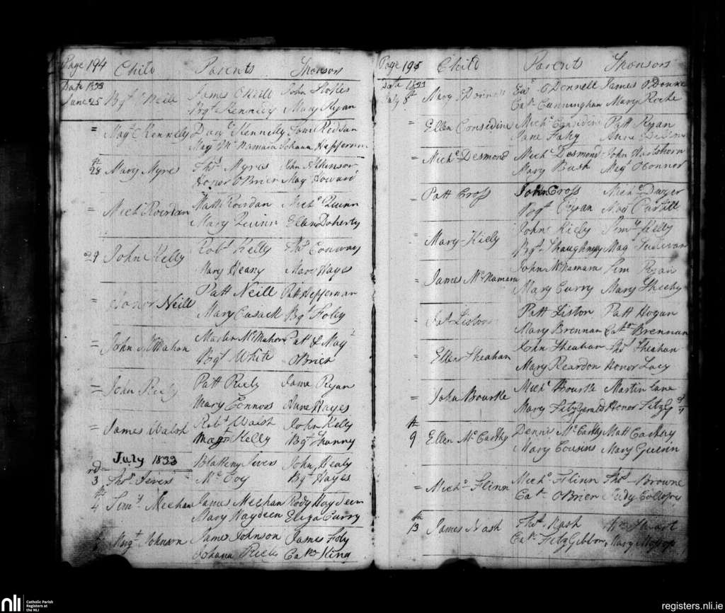 St. John's, Limerick city; County of Limerick; Diocese of Limerick. Baptisms, June 1833 to July 1833