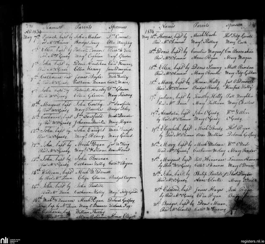 St. John's, Limerick city; County of Limerick; Diocese of Limerick. Baptisms, May 1834