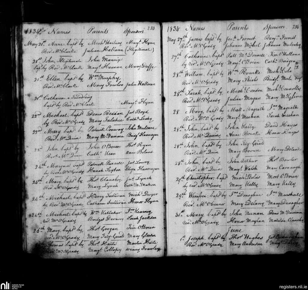 St. John's, Limerick city; County of Limerick; Diocese of Limerick. Baptisms, May 1834 to June 1834