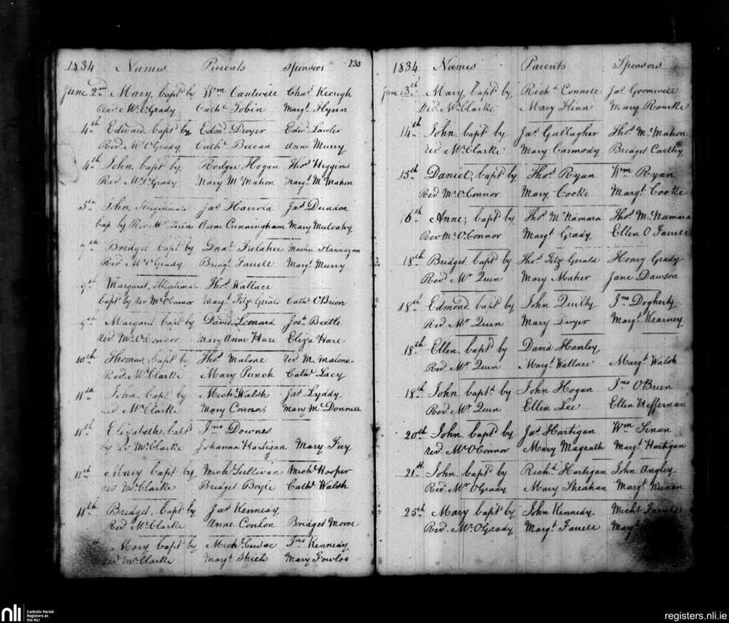 St. John's, Limerick city; County of Limerick; Diocese of Limerick. Baptisms, June 1834