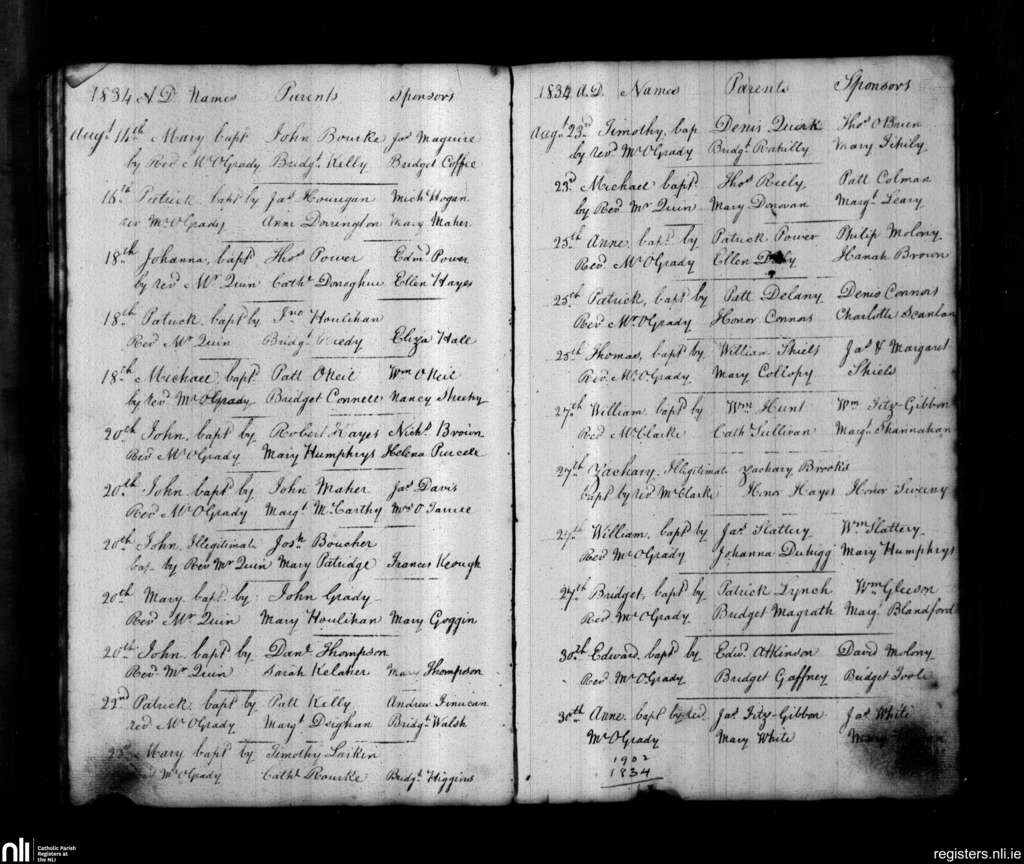 St. John's, Limerick city; County of Limerick; Diocese of Limerick. Baptisms, Aug. 1834