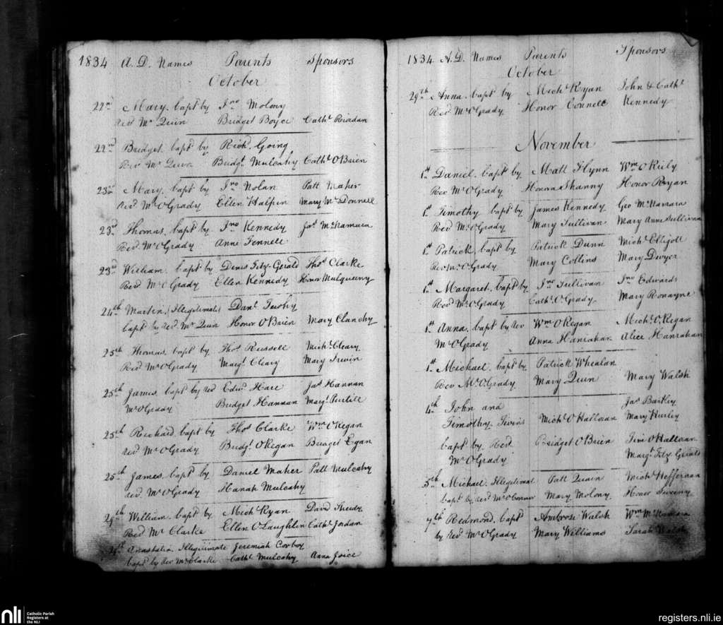 St. John's, Limerick city; County of Limerick; Diocese of Limerick. Baptisms, Oct. 1834 to Nov. 1834