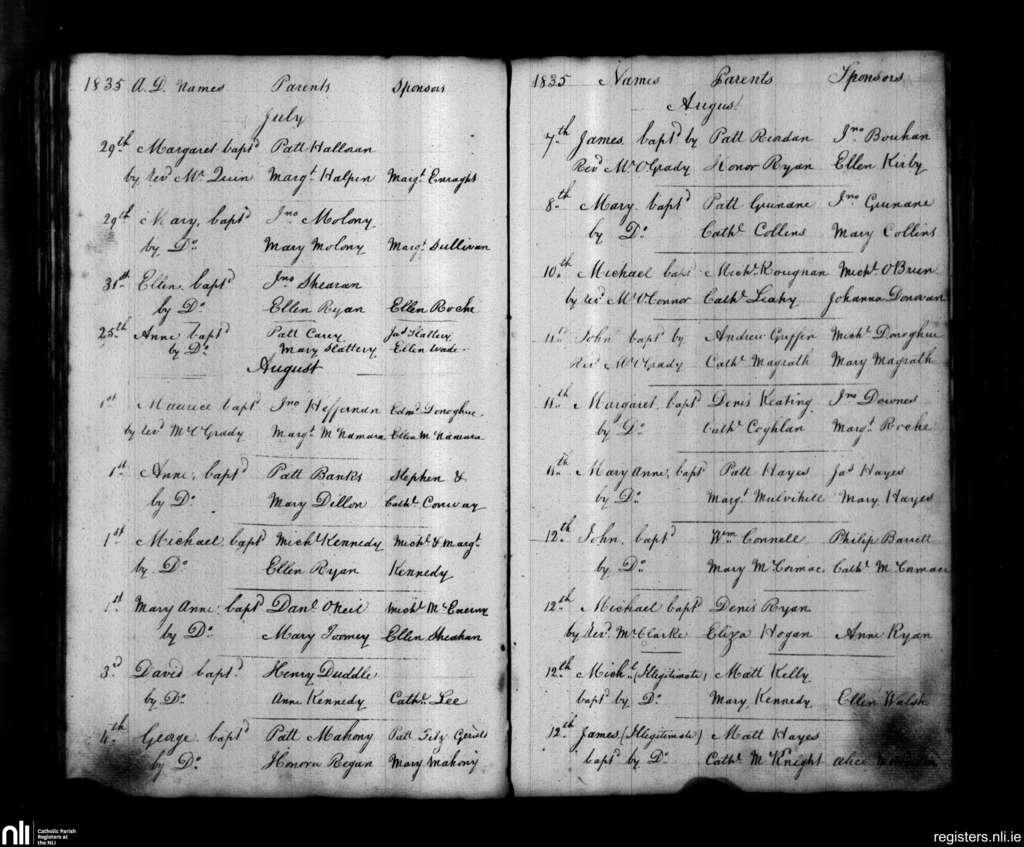 St. John's, Limerick city; County of Limerick; Diocese of Limerick. Baptisms, July 1835 to Aug. 1835