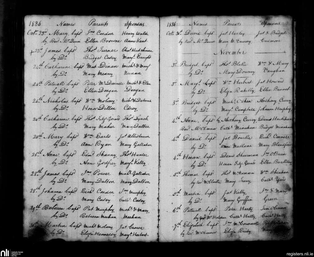 St. John's, Limerick city; County of Limerick; Diocese of Limerick. Baptisms, Oct. 1836 to Nov. 1836